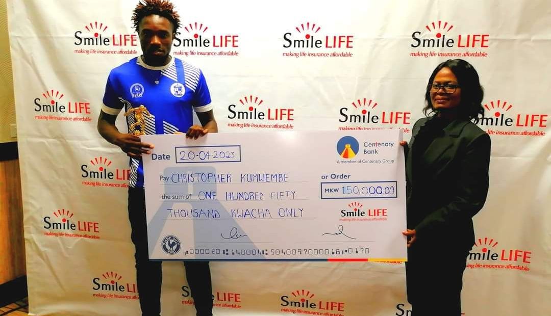 Mighty Mukuru Wanderers forward Christopher Kumwembe is the first player to receive K150, 000 from Smile Life Insurance Company Limited.